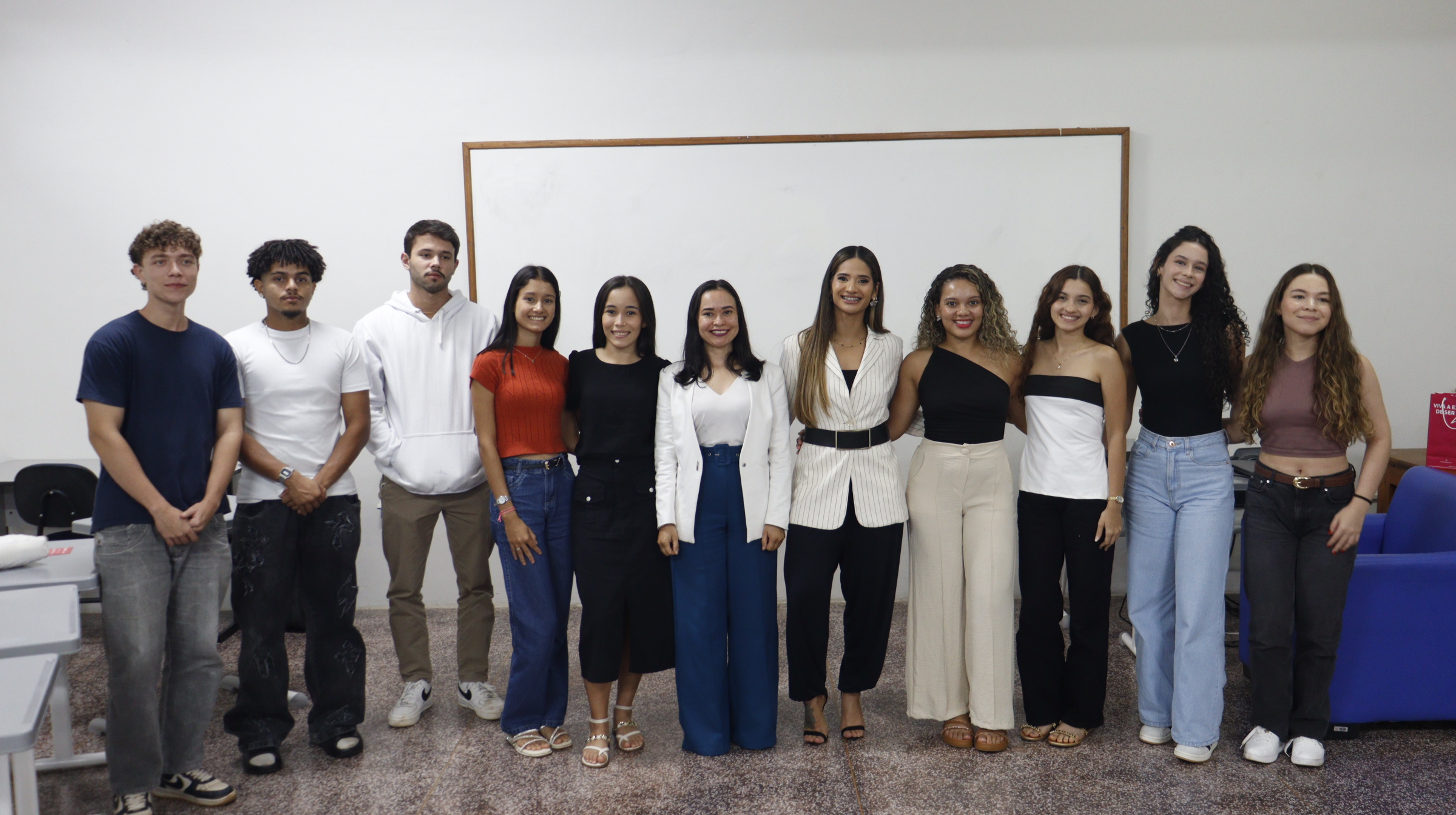 Durante a aula, Elaine compartilhou sua vivência acadêmica no curso de Nutrição, relatando os desafios enfrentados ao longo da formação, a importância da dedicação aos estudos e a construção do conhecimento científico aliado à prática profissional. Com uma abordagem próxima e motivadora, ela destacou como nasceu sua paixão pela área da Nutrição, especialmente voltada à saúde da mulher, emagrecimento comportamental e performance esportiva.