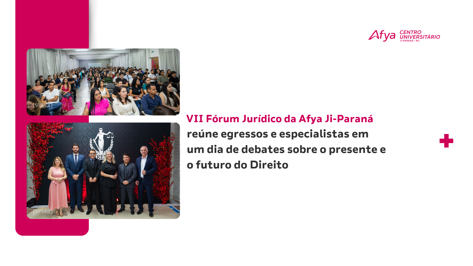 Marcado por grande participação do público, o VII Fórum Jurídico consolidou-se como um dos eventos mais importantes da Afya Ji-Paraná, reunindo estudantes, docentes e profissionais para um dia de debates profundos, troca de experiências e fortalecimento da identidade acadêmica. O sucesso da edição reforça a maturidade do curso de Direito e seu compromisso contínuo com a excelência, com a inovação e com a formação de juristas preparados para construir um futuro mais justo e consciente.
